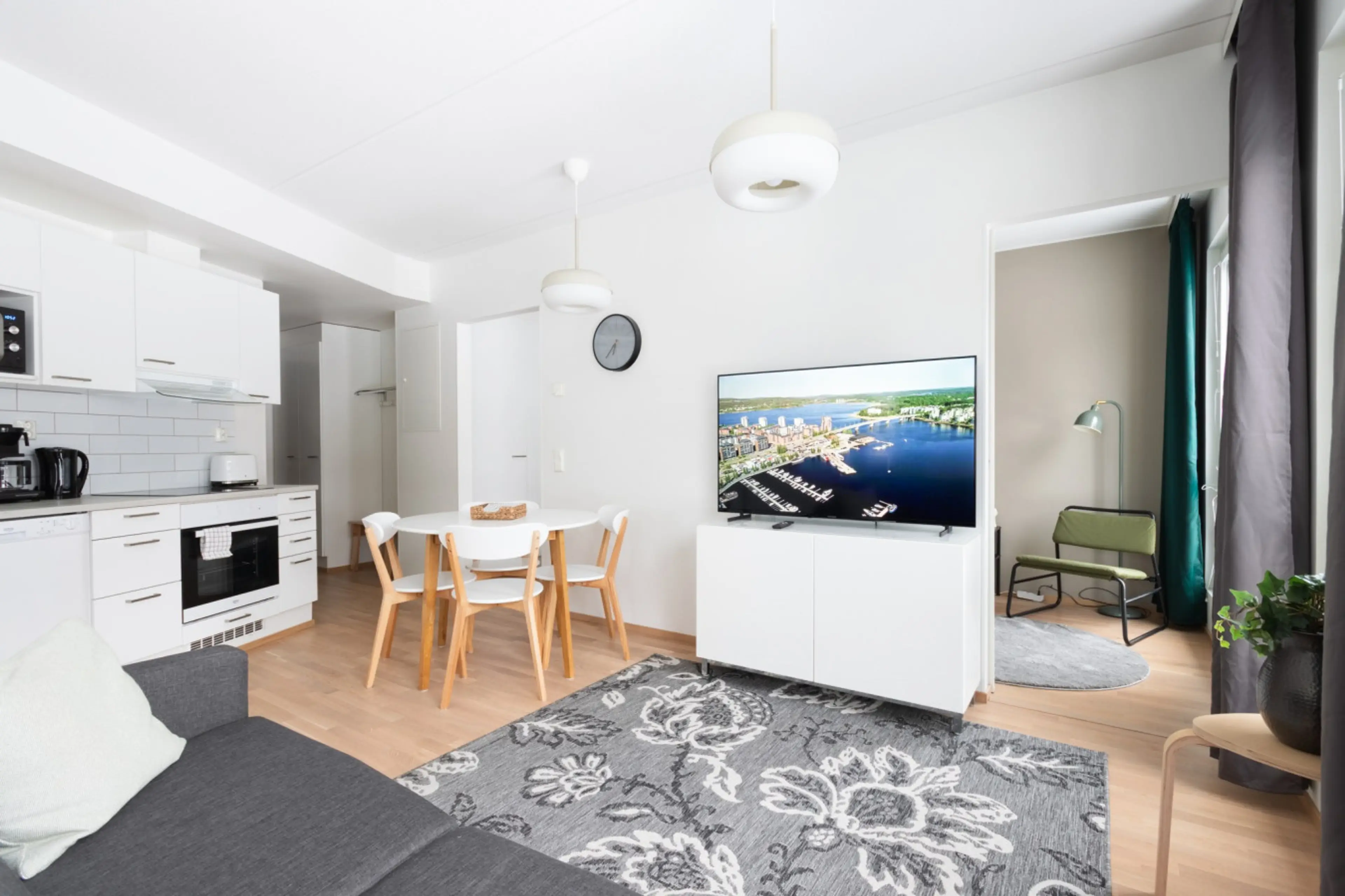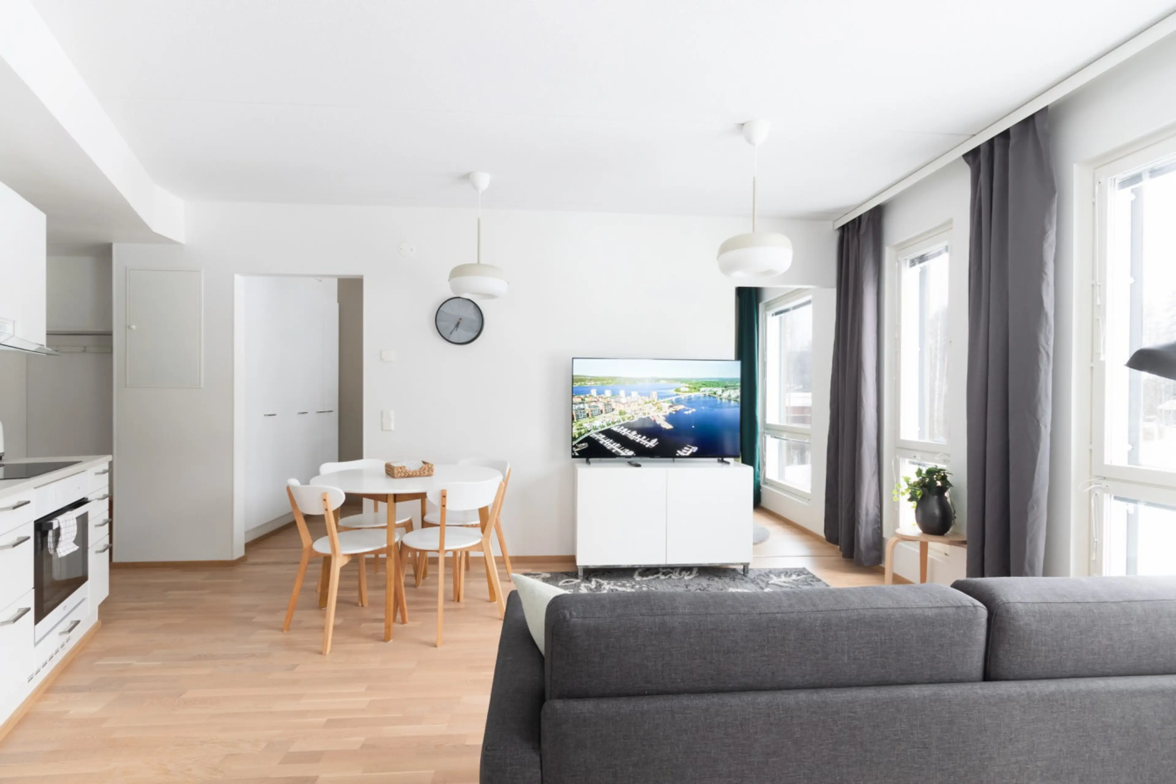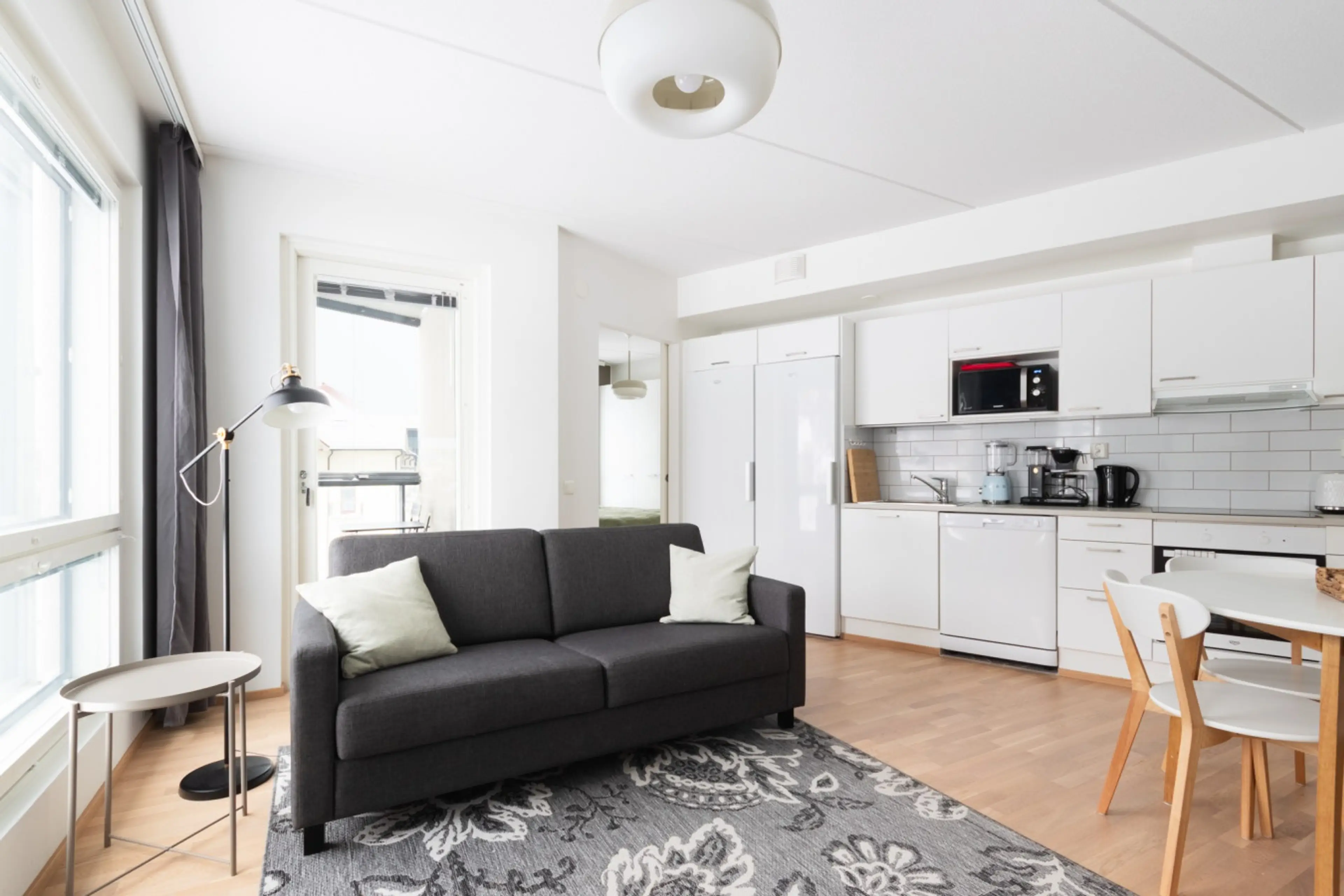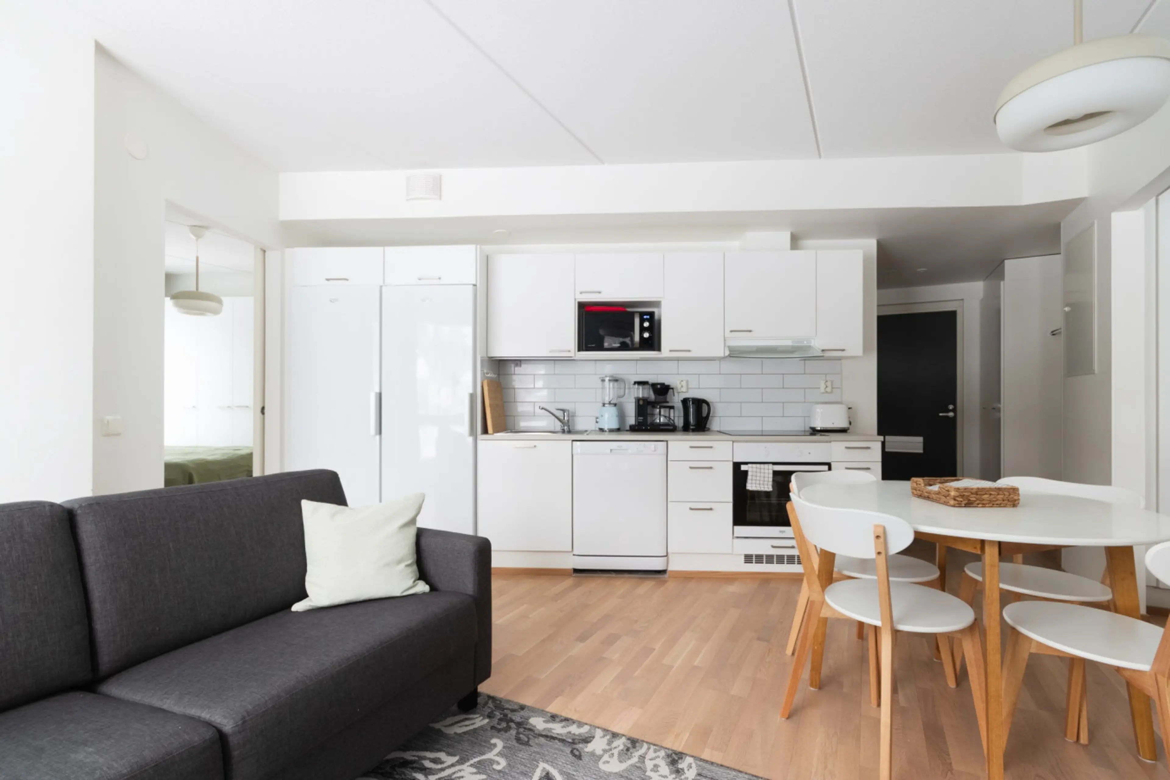This apartment has two bedrooms, one with 180cm wide bed and one with 160cm wide bed. The living room with the open floor plan combine the kitchen and living room into a well functioning space which sleep 2 more persons on the sofa bed. You can enter the private balcony or enjoy the warm spa-momen...