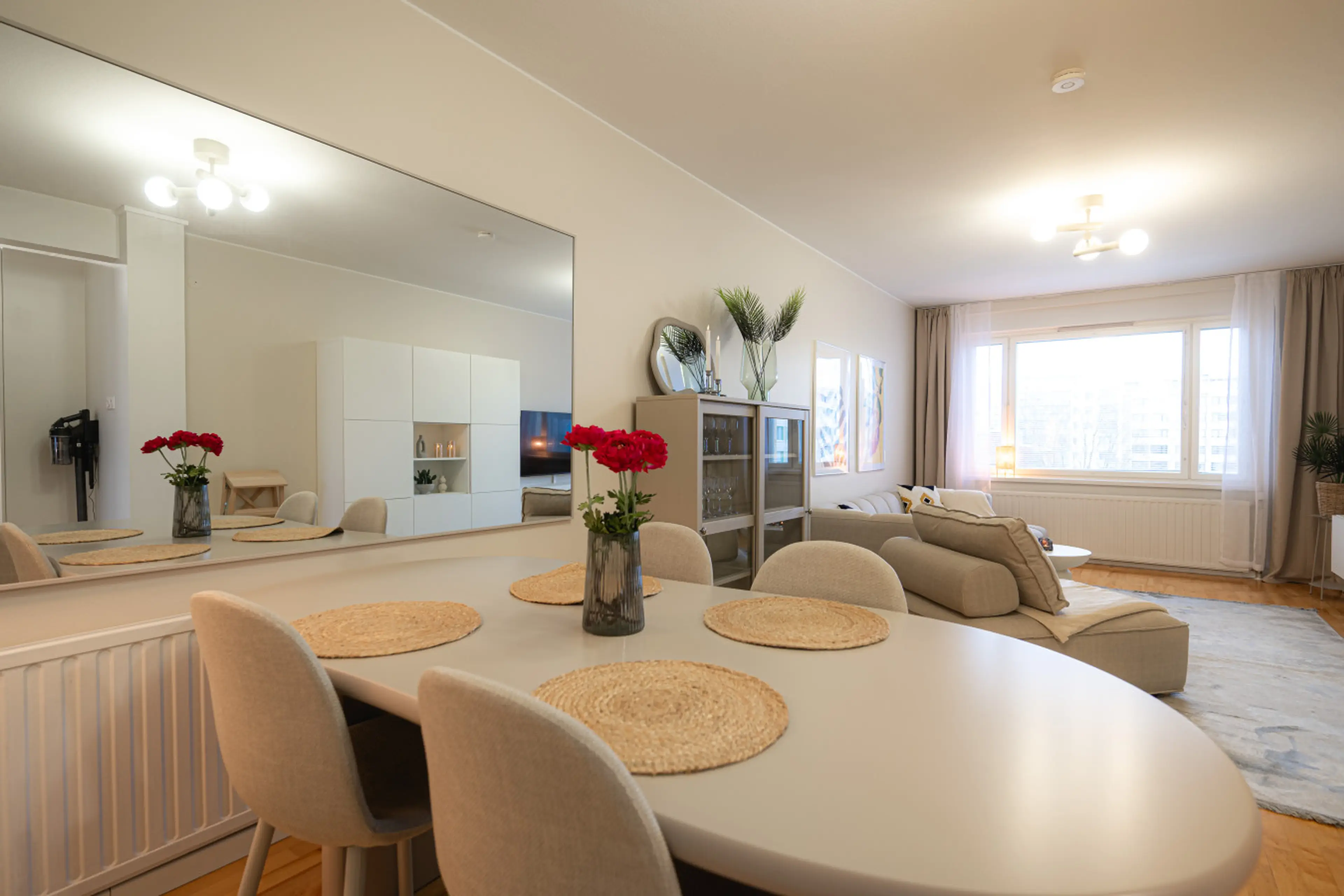 Stay in our bright, beautifully furnished top-floor apartment in the heart of Tampere with stunning city and lake views. This stylish home offers a peaceful retreat above the city while being just steps from shops, restaurants, events, and public transport. Large windows open up beautiful views ov...