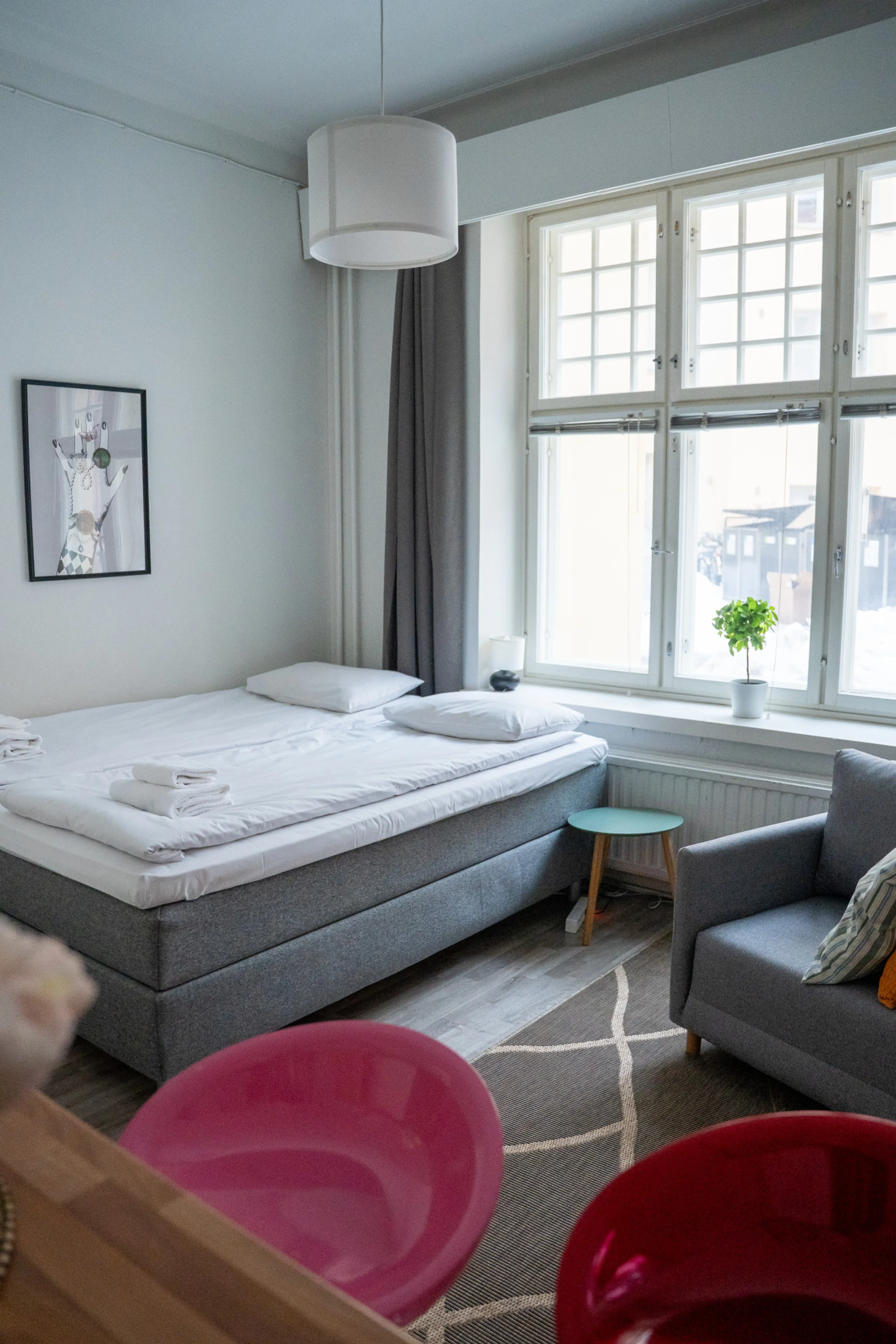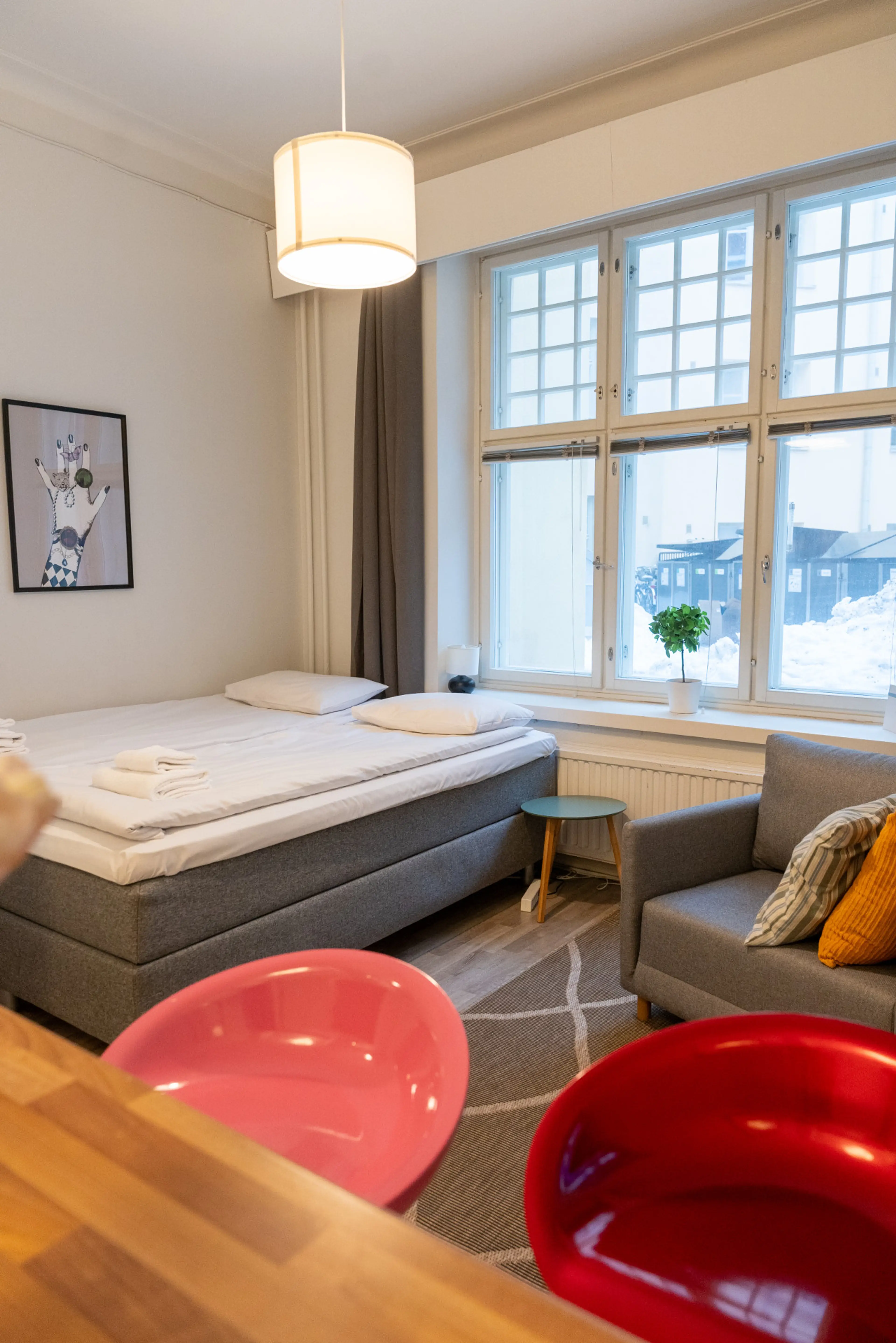 This cosy small apartment in the best location to explore the city. This apartment in Etu Töölö area is well equipped for your stay. It has a comfortable double bed, lounge chair which converts to a bed for the third person, fully equipped kitchen with washing machine and dishwasher and bathroom. T...